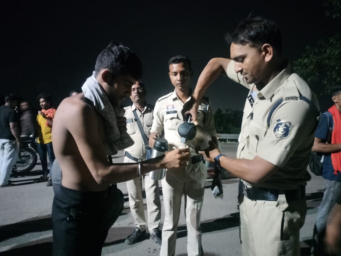 पुलिस ने श्रद्धालुओं के लिए चाय का वितरण किया, जिससे उन्हें राहत मिल सके।