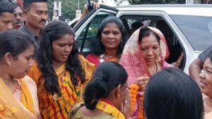 Vo कार्यक्रम के दौरान देवभोग क्षेत्र की महिलाओं ने पारंपरिक लोक नृत्य के माध्यम से अतिथियों का स्वागत किया। मुख्य अतिथि कौशल्या देवी साय का अभिनंदन पुष्पमालाओं और शॉल-श्रीफल भेंट कर किया गया। Clip