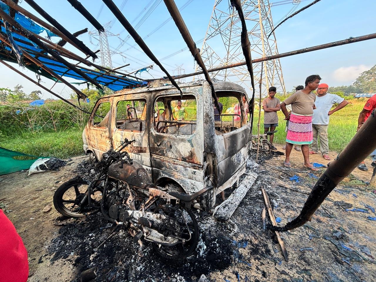 अज्ञात लोगों ने रात लगभग 2 बजे तिलकेजा गांव में एक इक्को वाहन और दो मोटरसाइकिलों को आग लगा दी।