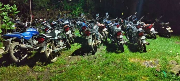 पुलिस ने मौके से 18 बाइक और एक कार जब्त की है।