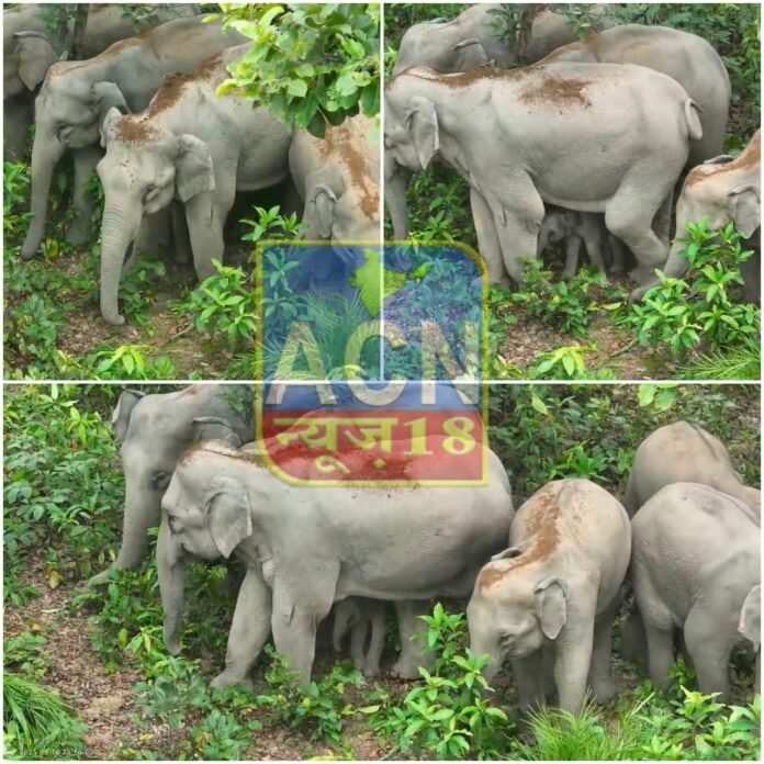 दो दर्जन हाथियों के दल में जन्मे नन्हे शावक से वन विभाग उत्साहित