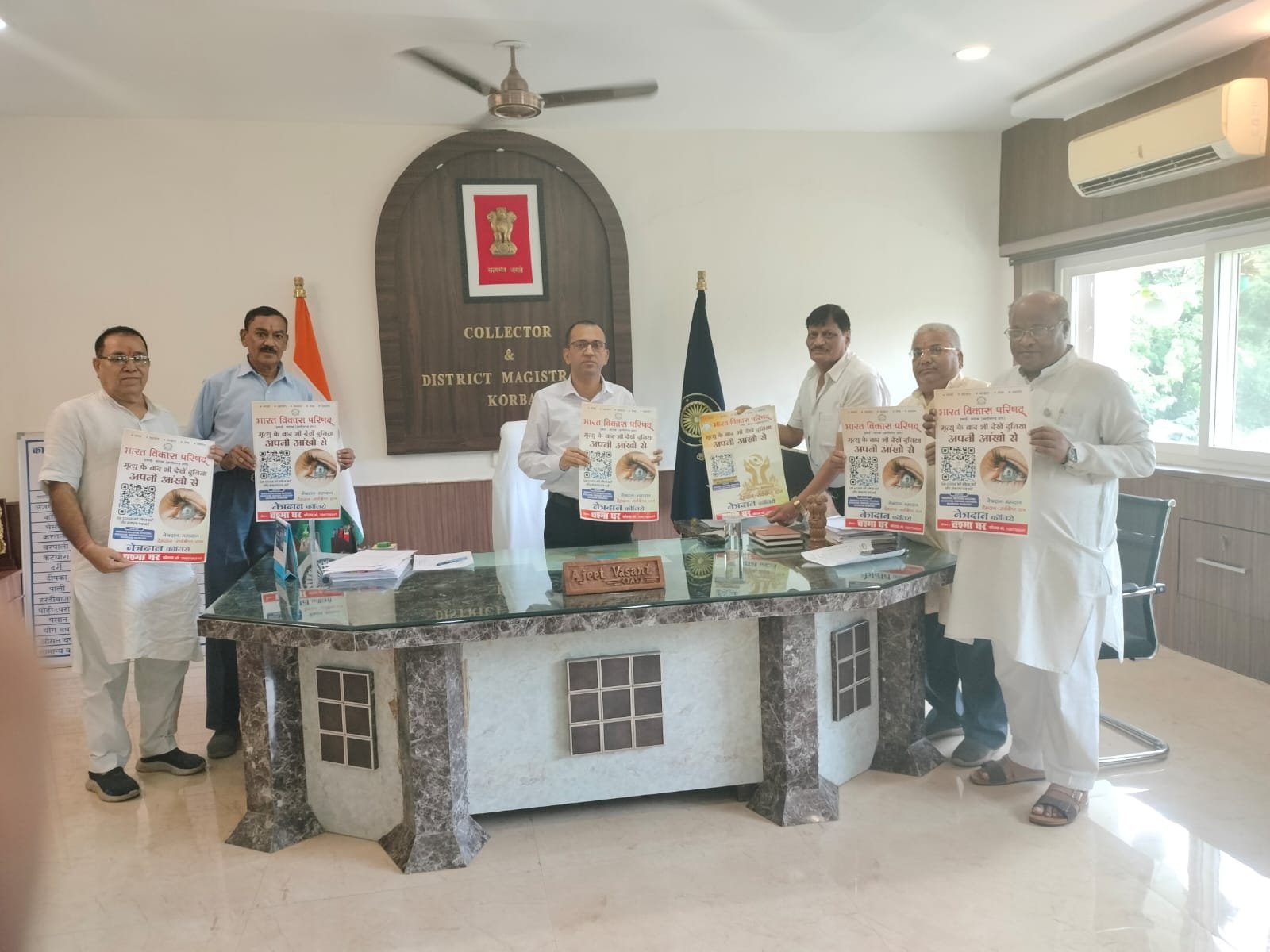 कोरबा कलेक्टर अजीत बसंत ने भारत विकास परिषद के प्रयास की सराहना करते हुए नेत्रदान देहदान को समर्पित पोस्टर का विमोचन किया। नेत्रदान देहदान प्रकल्प के प्रभारी महेश गुप्ता अध्यक्ष कमलेश यादव धर्मेंद्र कुदेशिया मोहन अग्रवाल और प्रमोद पांडेय की उपस्थिति में कलेक्टर ने पोस्टर का विमोचन करते हुए नेत्रदान को लेकर की गई तैयारी की जानकारी हासिल की।