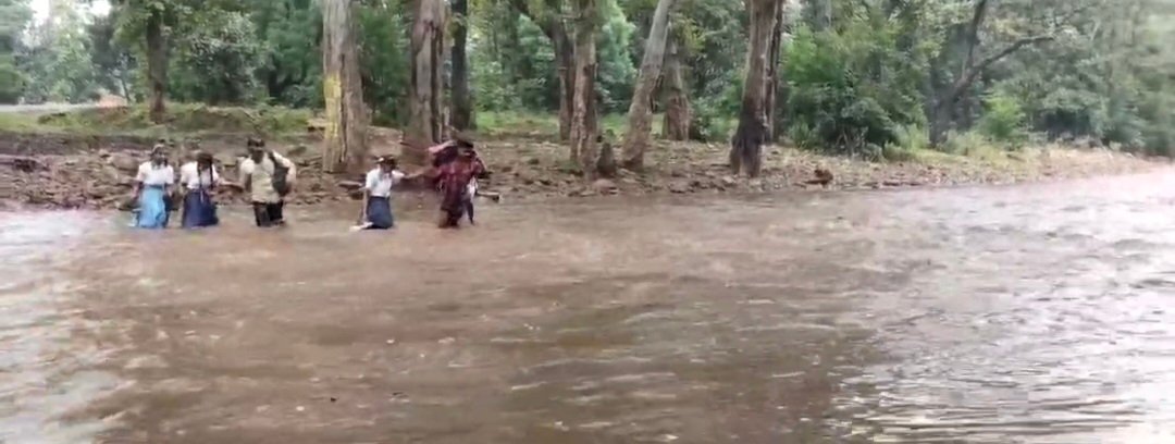 जान जोखिम में डाल स्कूल जा रहे बच्चे, उफनती नदी पार करना मजबूरी