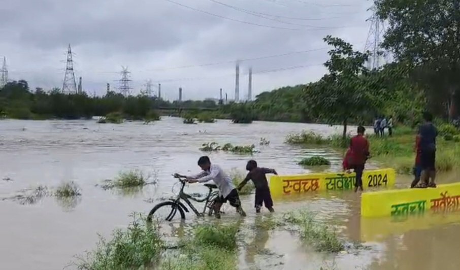 बाल्को ढेंगुर नाला उफनाया तटबंध डूब गए पानी में देखिए वीडियो