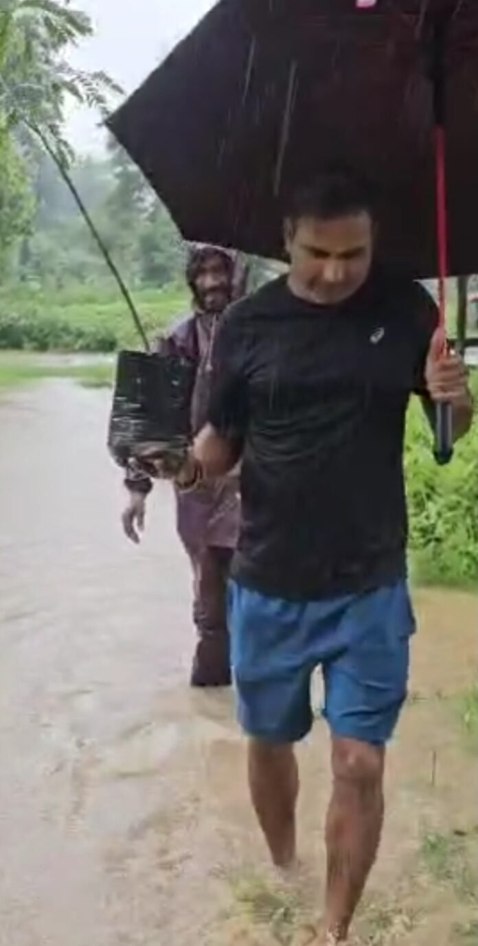 भारी बरसात के बीच किया गया वृक्षारोपण
