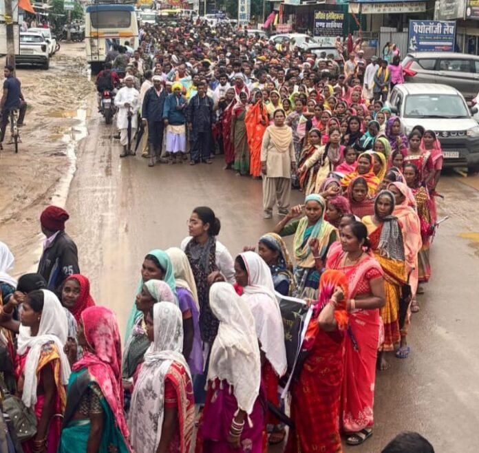 सैकड़ों ग्रामीण जुटे प्रदर्शन में