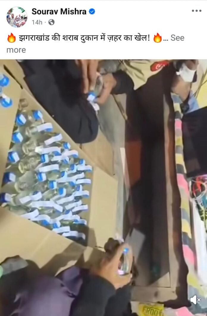 मनेद्रगढ़ के झगरा खांड शराब दुकान में की जा रही मिलावट का एक वीडियो सोशल मीडिया पर वायरल हो रहा है। कांग्रेस प्रवक्ता सौरभ मिश्रा ने इस वीडियो को वायरल करते हुए बताया है की पुलिस थाना के बाजू में स्थित शराब दुकान के अंदर ही मिलावट का कारोबार चल रहा है। दुकान के सेल्समैन ही इस मिलावट को अंजाम दे रहे हैं। सील तोड़कर उसमें पानी मिलाने के बाद काउंटर पर रखकर उसे बेचा जा रहा है