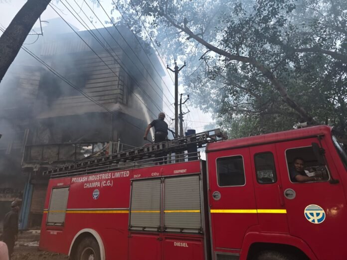 – शिवरीनारायण थाना क्षेत्र अंतर्गत बीती रात शहर के व्यस्ततम बॉम्बे मार्केट इलाके में भीषण आग लग गई। यह हादसा लगभग रात 1:30 से 2:00 बजे के बीच हुआ, जब अधिकांश दुकानदार घरों को लौट चुके थे। आग लगने के कारण अभी स्पष्ट नहीं हैं, लेकिन इसके फैलाव ने पूरे बाजार को दहशत में डाल दिया।