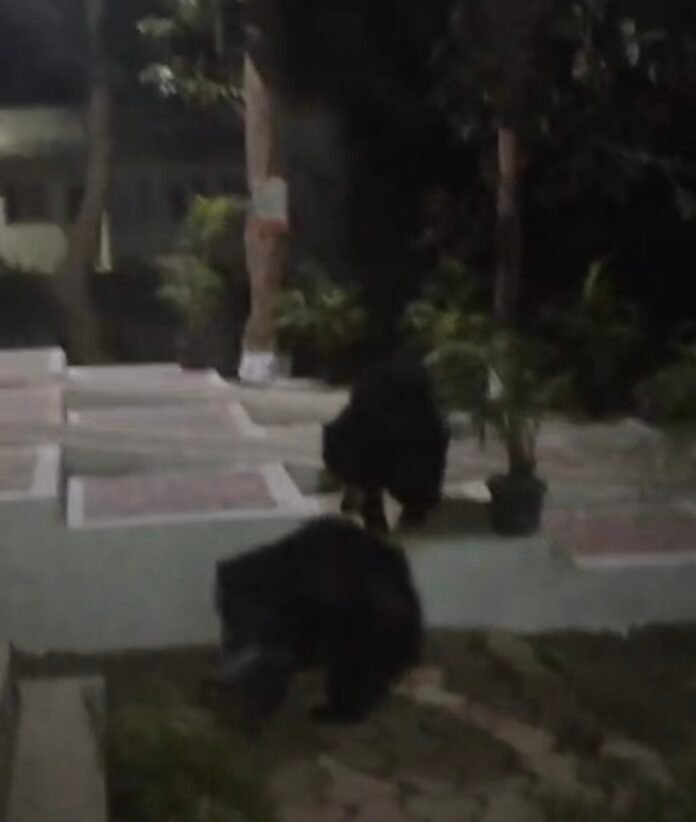 सतरेंगा रिसोर्ट परिसर में उस समय हड़कंप मच गया, जब दो जंगली भालू अचानक गार्डन क्षेत्र में घूमते नजर आए।