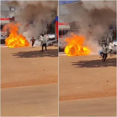 पेट्रोल की आग इतनी भयानक ओर तेज थी कि जैसे ही उसे मौका मिला उसने आग की एक भयानक तस्वीर के रूप में स्वयं को तब्दील कर लिया। तुरंत डालें हुए पेट्रोल की मात्रा इतनी ज़्यादा थी कि आग के दबाव में मोटर साइकिल की टंकी ब्लास्ट हो गई। गनीमत रही कि उस दौरान पंप के सभी मशीन बंद थे जिससे आग को गाड़ी के अलावा कही और फैलने का मौका नहीं मिला।