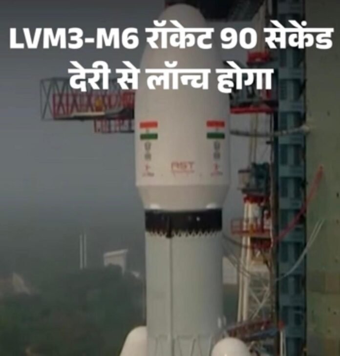 “LVM3-M6 रॉकेट को 90 सेकेंड देरी से किया गया। इसे पहले सुबह 8:54 बजे लॉन्च किया जाना था। इसरो के अनुसार, श्रीहरिकोटा के स्पेस एरिया के ऊपर हजारों एक्टिव सैटेलाइट लगातार गुजर रहे थे। अन्य सैटेलाइट के साथ टकराव की आशंका को देखते हुए मिशन का लॉन्च समय 90 सेकेंड बढ़ाया गया। ”