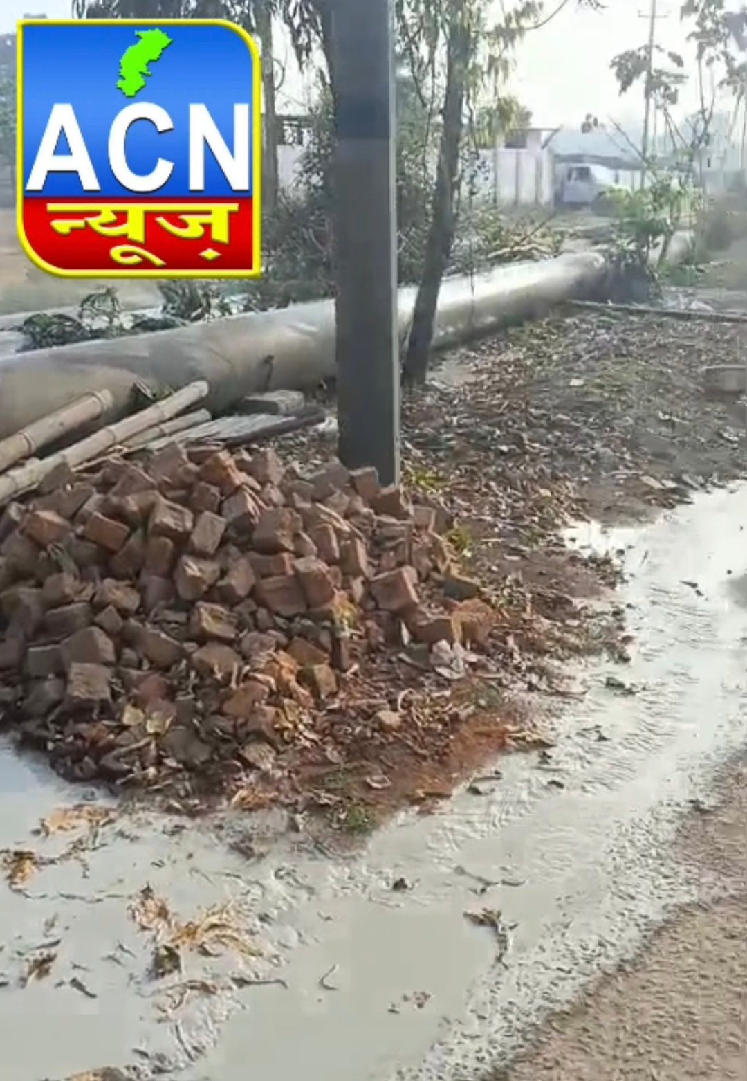 राखड़ पाइपलाइन टूटी, राख युक्त पानी फैला सड़क पर