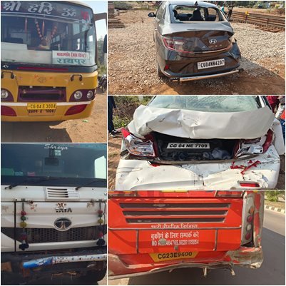 अभनपुर रायपुर मार्ग पर बड़ा हादसा.चार से पांच वाहन टकराए, सवारी बसों में चल रही थी रेस