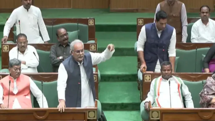 रायपुर। छत्तीसगढ़ विधानसभा के बजट सत्र में मंगलवार को विपक्ष ने मनरेगा पर लाया स्थगन प्रस्ताव। पूर्व मुख्यमंत्री भूपेश बघेल ने सदन में स्थगन प्रस्ताव पेश कर इस पर चर्चा की मांग की। सततापक्ष और विपक्ष के बीच इस पर तीखी नोक झोंक के बाद सभापति की ओर से स्थगन नामंजूर होने पर कांग्रेस विधायकों ने सदन की कार्यवाही का बहिष्कार कर दिया।