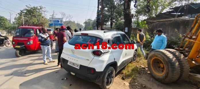 बताया जा रहा है कि कार क्रमांक सीजी 12 बी जी 3303 को एक डॉक्टर चला रहा था । सिविल लाइन थाना अंतर्गत चांवल गोदाम तिराहा चौक के पास दो बाइक सवार को अपनी चपेट में लेते हुए सवारी वाली इलेक्ट्रिक ऑटो से जा टकराया फिर स्विफ्ट डिजायर को ठोकते हुए सड़क किनारे जा घुसा।इस हादसे में इलेक्ट्रिक ऑटो की चालक को मामूली चोट आई है।चौक पर होटल चला रहे लूतन वर्मा ने बताया कि इस चौक पर अक्सर हादसे होते रहते हैं कई लोगों की जान तक जा चुकी है। ठीक एक माह पहले एक बस की चपेट में आने से बाइक सवार की घटना स्थल पर ही मौत हो गई थी। तिराहा होने के कारण यह घटना सामने आई थी। इस जगह स्टॉपर होना बहुत जरूरी है नहीं तो और भी लोगों की जान जा सकती है।नाई दुकान के संचालक राकेश श्रीवास ने बताया कि पिछले कई सालों से इसी जगह वह दुकान चला रहे हैं अब तक कई लोगों की मौत हो चुकी है और कई लोग घायल हो गए हैं इस मार्ग पर भारी वाहनों का दबाव है और इस चौक पर ब्रेकर होना बेहद जरूरी है।