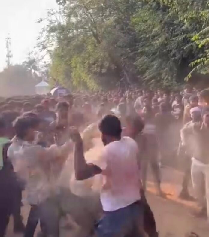 प्रशासनिक भवन से 50 मीटर दूरी पर जमकर चले लात घूंसे