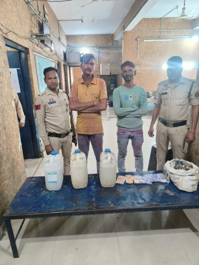 कल खुलेआम अवैध शराब बिक्री की सूचना मिलने पर हरदीबाजार थाना प्रभारी प्रमोद कुमार डनसेना के निर्देश पर सहायक उप निरीक्षक कृपा शंकर दुबे ने अपने टिम के साथ महेश ढाबा में दबिश देते हुए 30 लीटर कच्ची महुआ शराब, 22 नग देशी पाव,8 नग गोवा एवं शराब के बिक्री रकम 4500 सौ रुपए के साथ विक्री करते हुए मुख्य आरोपी महेश यादव पिता स्व अजब सिंह यादव उम्र 28 वर्ष निवासी हरदी बाजार एवं सहयोगी प्रमोद कुमार राठौर पिता कृष्ण कुमार राठौर उम्र 38 वर्ष निवासी हरदी बाजार को आबकारी एक्ट 34,/ 2 के तहत गिरफ्तार कर जेल भेज दिया