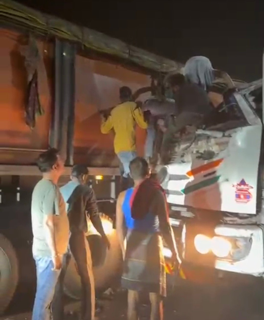 राताखार मार्ग पर दो ट्रेलरों की भीषण टक्कर