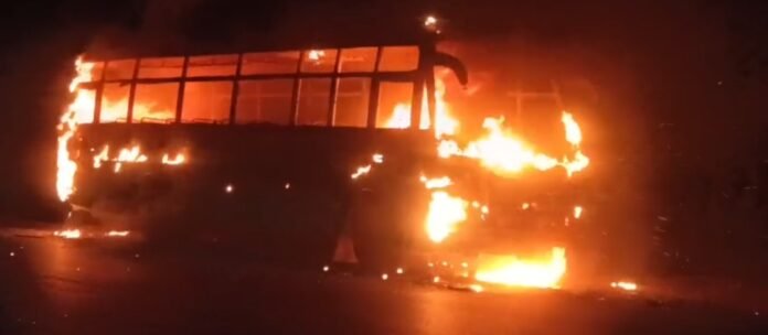 शादी समारोह में शामिल होने के बाद बाराती बस में सवार होकर वापस लौट रहे थे। रास्ते में बस में अचानक आग दिखी और देखते ही देखते पूरी बस आग की चपेट में आ गई। किस्मत अच्छी थी बारातियों की कि वह भयंकर ज्वाला में बस तब्दील हो इससे पहले ही वह गाड़ी से कूद चुके थे।