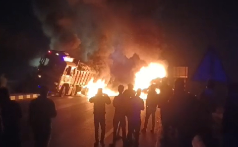 जानकारी के मुताबिक, हादसे के दौरान जिप्शम से भरे ट्रक का टायर फटने के कारण ड्राइवर और खलासी वाहन से नीचे उतरे हुए थे, तभी पीछे से आ रहे ट्रेलर ने ट्रक को जोरदार टक्कर मार दी. टक्कर इतनी जबरदस्त थी कि दोनों वाहनों में तुरंत आग लग गई.
