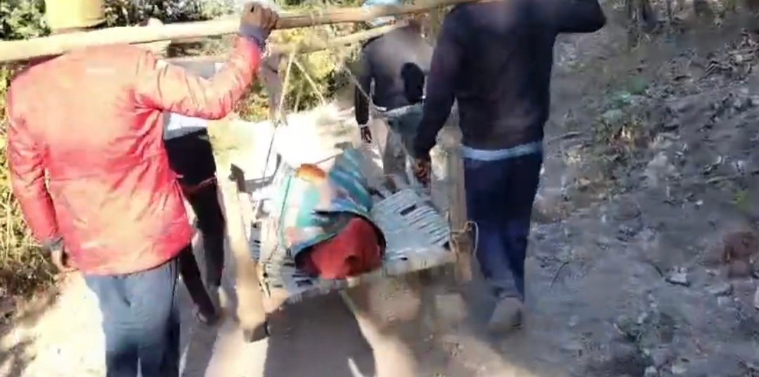 पहुंचविहीन गांव से मरीज को सड़क तक लाने की मशक्कत