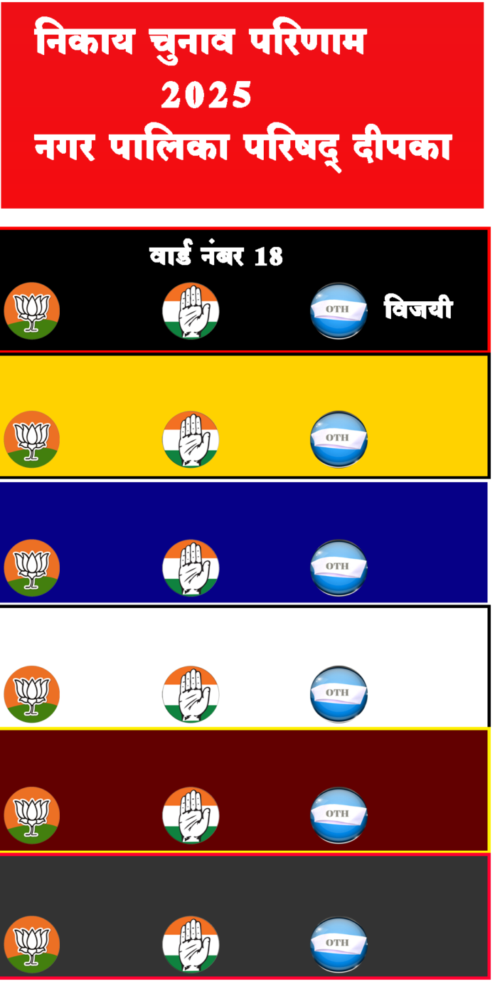 KORBAUncategorizedखेलछत्तीसगढ़ज़रा हटकेख़ास ख़बर नगर पालिका परिषद् दीपका के वार्ड नंबर 18 के निर्दलीय पार्षद प्रत्याशी हुए विजयी By KAMLESH YADAV 9425532015 - 15/02/2025 0 42 Share Share