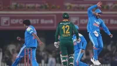पहले ही ओवर में हर्षित राणा ने दो विकेट झटका कर मेहमानों को बैकफुट पर धकेल दिया।सिर्फ 17 के स्कोर पर तीन विकेट गिर चुके थे। यहीं से मैच की दिशा लगभग तय होने लगी।