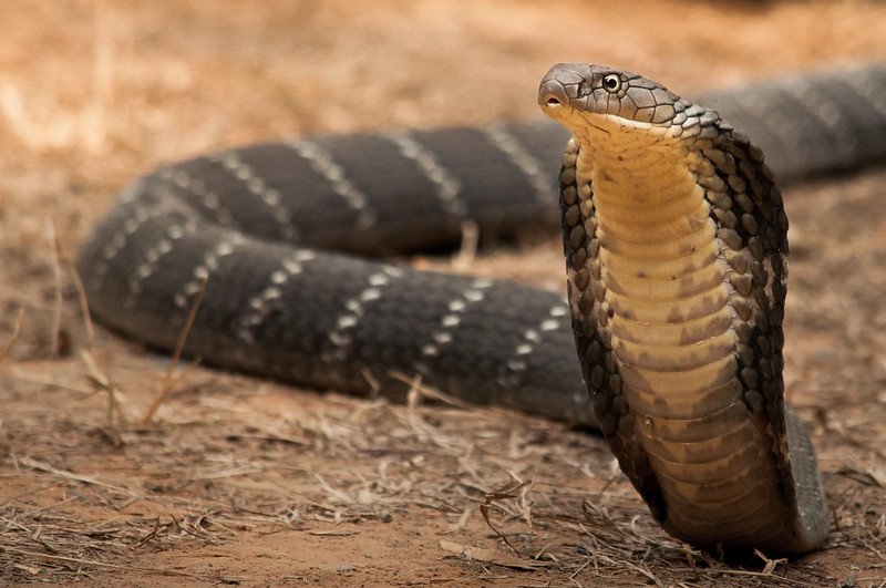 खेत में गेहूआं सांप को निगलते दिखा किंग कोबरा