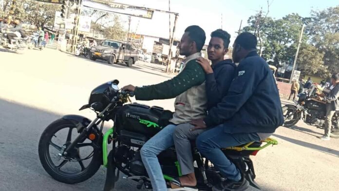 कोरबा . कोरबा पुलिस द्वारा सड़क सुरक्षा एवं यातायात अनुशासन को सुनिश्चित करने के उद्देश्य से शहर एवं जिले के विभिन्न शहरी क्षेत्रों में दोपहिया वाहनों पर ट्रिपल राइडिंग (तीन सवारी बैठाने) के विरुद्ध विशेष चेकिंग अभियान चलाया गया। यह अभियान सड़क दुर्घटनाओं में कमी लाने, नियम विरुद्ध तीन सवारी बैठाने की प्रवृत्ति पर रोक लगाने एवं आम नागरिकों की सुरक्षा को ध्यान में रखते हुए संचालित किया गया।