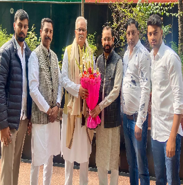 भूपेश बघेल का मोहम्मद गुलाब ने पुष्पगुच्छ भेंट कर किया स्वागत
