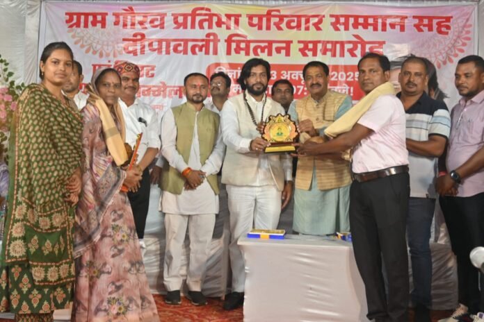 बीते दिनों मातर एवं भाईदूज के अवसर पर ग्राम कोलर में ग्राम गौरव प्रतिभा परिवार सम्मान सह दीपावली मिलन समारोह एवं विराट हास्य कवि सम्मेलन का आयोजन किया गया। आयोजन में मुख्य अतिथि प्रदेश के कैबिनेट मंत्री श्री गुरु खुशवंत साहेब जी रहे एवं अध्यक्षता अंचल के लोकप्रिय विधायक श्री इंद्रकुमार साहू जी ने किया। कार्यक्रम की शुरुआत मंचासीन अतिथियों द्वारा मां सरस्वती एवं छत्तीसगढ़ महतारी के तैलचित्र में दीप प्रज्वलित कर किया गया। कार्यक्रम दो सत्रों में संपन्न हुआ, प्रथम सत्र में गांव के दसवीं बारहवीं में उत्कृष्ट अंक लाने वाले प्रतिभावान छात्र-छात्राओं, प्राध्यापक एवं लगभग 20 शिक्षकों को माननीय मंत्री जी ने शाल स्मृतिचिन्ह एवं श्रीफल देकर ग्राम गौरव प्रतिभा परिवार सम्मान से सम्मानित किया । कार्यक्रम में स्वागत उद्बोधन समिति के संरक्षक हरिराम यादव जी ने प्रस्तुत किया। अपने उद्बोधन में मंत्री गुरु खुशवंत साहेब जी ने कहा कि आज हमारा प्रदेश संचार क्रांति की दिशा में नित नए सफलता के सोपानों को छू रहा है एआई हब से लेकर रोबोटिकस की पढ़ाई प्रदेश में हो रही है जिससे युवाशक्ति को अपनी प्रतिभा को निखारने का बेहतर मंच मिला है वहीं प्रदेश की उन्नति को लेकर भी अपनी बातें रखी साथ ही सरस्वती शिशु मंदिर सारखी के अतिरिक्त भवन निर्माण के लिए 7 लाख रु की घोषणा की। कार्यक्रम की अध्यक्षता कर रहे अंचल के लोकप्रिय विधायक इंद्रकुमार साहू ने भाईदूज के अवसर पर भाई बहन के प्रेम को इंगित करते हुए कार्यक्रम की खूब सराहना की एवं स्वेच्छानुदान से 10 हजार रुपए की सहयोग राशि समिति को प्रदान करने की बात कही। ग्राम गौरव प्रतिभा परिवार सम्मान से सम्मानित होने वाले सदस्यों में लोकमणी यादव प्राध्यापक, मनोज कुमार साहू , सत्येन्द्र साहू व्याख्याता, शिक्षक -प्रदीप साहू , शिवकांत साहू, रघुराम साहू, मोनिका साहू, मुक्तानंद ध्रुव, प्रधान पाठक- शेषनारायण साहू, गयाराम ध्रुव, शिवकुमार टंडन, लता साहू, सरोज यादव, सहा शिक्षक -हरिराम यादव, ओमप्रकाश टंडन, होरीलाल ध्रुव, द्वारिका प्रसाद साहू, खेमलता साहू भूपेंद्र साहू, चुनूराम साहू शामिल रहे। कार्यक्रम के दूसरे सत्र में विराट हास्य कवि सम्मेलन का आयोजन किया गया जिसमें प्रदेश के नामचीन कवि कृष्णा भारती ने छत्तीसगढ़ी कविता पढ़कर खूब वाहवाही बटोरी वही, भरत द्वेदी जी ने पिता पर अपनी श्रेष्ठ पंक्ति पढ़कर सभी दर्शकों को मंत्रमुग्ध कर दिया, दुर्ग से आए डा मयंक शर्मा ने देश के सैनिकों एवं शहीदों को याद करते हुए वीर रस की उत्कृष्ट पंक्तियां पढ़कर सभी का ध्यान आकर्षित किया, अंजुलता साहू ने अपनी श्रृंगार की रचनाओं से झूमने के लिए मजबूर कर दिया वहीं कवि सम्मेलन का संचालन कर रहे प्
