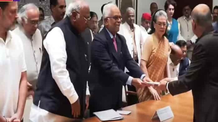 acn18.com नई दिल्ली/ उपराष्ट्रपति पद के लिए विपक्षी गठबंधन के उम्मीदवार बी. सुदर्शन रेड्डी गुरुवार को अपना नामांकन दाखिल किया। इस दौरान कांग्रेस अध्यक्ष मल्लिकार्जुन खरगे, पूर्व अध्यक्ष सोनिया गांधी समेत तमाम नेता मौजूद रहे। इसस पहले बुधवार को खरगे ने घटक दलों के नेताओं से उनका परिचय करवाया। संसद के केंद्रीय कक्ष में खरगे के साथ पहुंचे सुदर्शन का स्वागत करने के लिए कांग्रेस संसदीय दल की प्रमुख सोनिया गांधी समेत अन्य विपक्षी दलों के नेता मौजूद थे। उनके साथ हुई बैठक में गठबंधन के सभी सहयोगियों ने अपना पक्ष रखा।