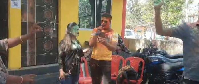 पुलिस वालों ने लिया होली का मजा ,रंग गुलाल के साथ गीतों के साथ मस्ती