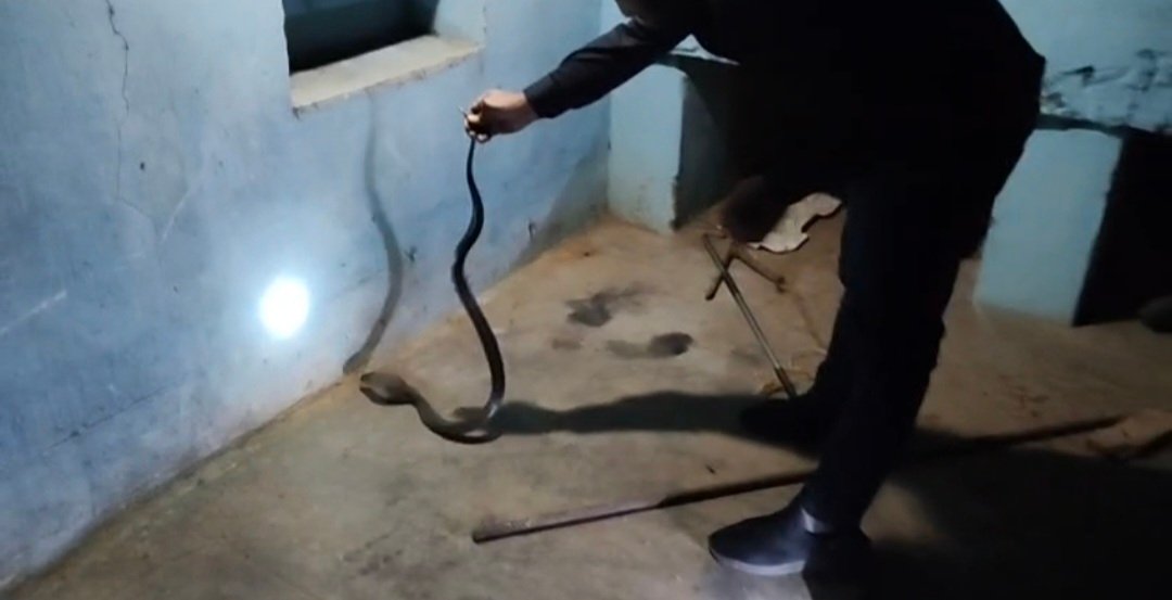 *कोरबा* – बाकी मोंगरा क्षेत्र में पटेल परिवार पिछले 11 घंटे से घर में घुसे सांप से बहुत परेशान था, जिसको निकालने का अथक प्रयास किया गया जिसमें परिवार सफल नहीं हुआ फिर 112 की मदद ली गई तब तक सांप घर के किसी कोने पर जाकर ओझल हो गया था तब तक रात हो गई फिर कुछ घंटे बाद जब परिवार ने उसी कमरे फिर उसे देखा तो डर से काप गए फिर आखिरकार आधी रात 10.30 बजे जितेंद्र सारथी को सूचना दिया गया जिस पर कुछ घंटे में पहुंचने की बात कहीं फिर कोरबा से बाकी मोंगरा पहुंचे फिर जिस जगह कोबरा बैठा हुआ था वहां पड़े समान को हटाया गया,घर में मौजूद नाग अत्यंत उग्र अवस्था में था, ऐसे में किसी भी तरह की लापरवाही जानलेवा हो सकती थी। जितेंद्र सारथी ने वन्यजीव रेस्क्यु प्रोटोकॉल का पूरी तरह पालन करते हुए, बेहद सावधानी और कुशलता के साथ नाग को सुरक्षित रूप से रेस्क्यु कर थैले में डाला।