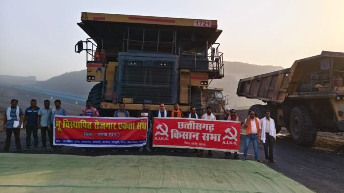 Acn18.comकोरबा/एसइसीएल कोरबा की कुसमुंडा गेवरा दीपिका और कोरबा क्षेत्र के प्रभावित भू स्थापित विरोध प्रदर्शन करने सड़क पर उतर आए हैं। कुसमुंडा खदान में छत्तीसगढ़ किसान सभा और भूमि स्थापित रोजगार एकता संघ के नेतृत्व में प्रदर्शन जारी है । सुबह 6:00 से खदान से कोयला परिवहन बंद कर दिया गया है ।विरोध प्रदर्शन की सूचना मिलने पर एसईसीएल के अधिकारी और सुरक्षा कर्मी पुलिस बल के साथ मौके पर मौजूद रहकर प्रदर्शन करने वालों से वार्ता कर रहे हैं