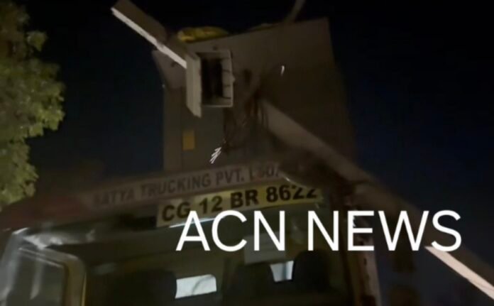 राखड गाड़ी ने बिजली के खम्भे उखाड़े