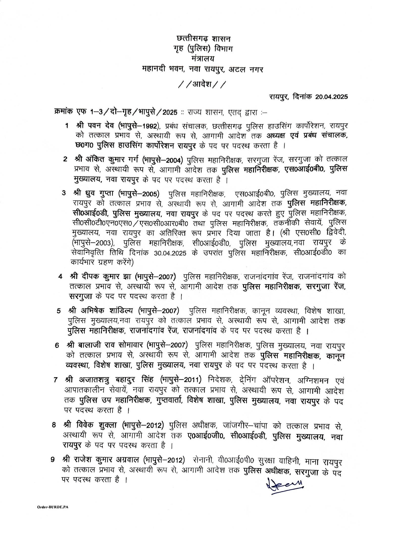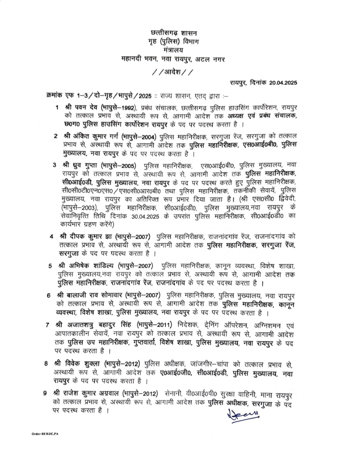 KORBA राज्य सरकार ने कई आईपीएस के प्रभार बदले विजय पांडे जांजगीर चांपा एसपी बनाए गए देखिए सूची By KAMLESH YADAV 9425532015 - 20/04/2025 0 93 FacebookXPinterestWhatsApp Share Share