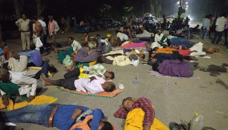 अडानी समूह के कोल माइंस के खिलाफ कलेक्ट्रेट के सामने रात भर डटे रहे ग्रामीण, दुधमुंहे बच्चों के साथ महिलाएं भी बैठी धरने पर